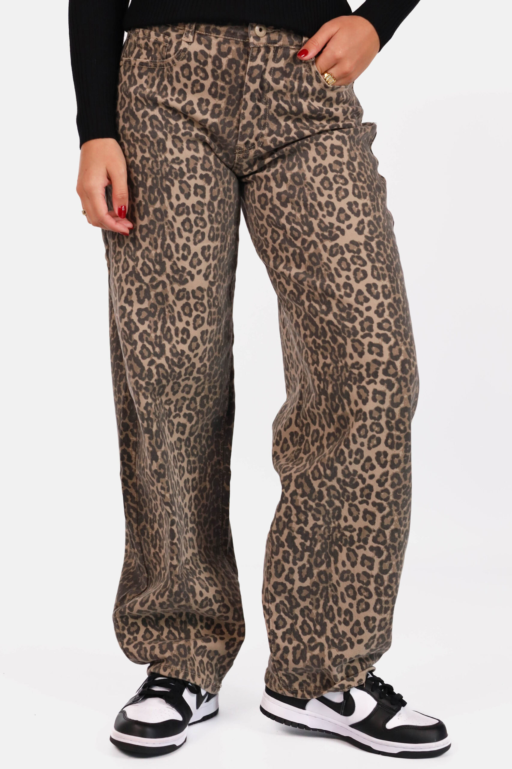 Deze balloon jeans met leopard print is de perfecte combinatie van stoer en stijlvol. De opvallende print geeft het item een krachtige uitstraling, terwijl de ballonvormige pijpen zorgen voor een speelse en modieuze look. Een echte eyecatcher voor je dagelijkse outfits. De broek heeft een hoge taille en een relaxed silhouet dat naar de enkels toe smaller uitloopt. De stevige denimstof biedt structuur, terwijl de lichte stretch zorgt voor comfort bij elke beweging. De lengte is full length, waardoor je hem moeiteloos draagt met sneakers, boots of hakken. Stijl deze jeans met een eenvoudige top om de print te laten spreken, of ga juist voor een edgy combinatie met een leren jasje of oversized blazer. Perfect voor wie durft te kiezen voor een opvallend silhouet met een vleugje lef.