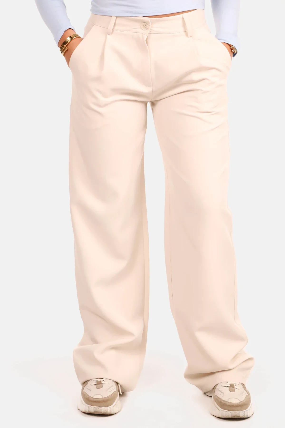 Deze stijlvolle bandplooibroek met wide leg design biedt een combinatie van elegantie en comfort. De hoge taille en subtiele plooidetails geven de broek een klassieke uitstraling, terwijl de wijde pijpen zorgen voor een moderne en luchtige pasvorm. Perfect voor zowel zakelijke als casual gelegenheden, dankzij het veelzijdige ontwerp. De broek is eenvoudig te combineren met diverse items uit je garderobe. Draag hem met een blouse en hakken voor een chique, professionele look, of ga voor een meer ontspannen outfit met een basic top en sneakers. Het materiaal voelt zacht aan op de huid en biedt voldoende bewegingsvrijheid, wat zorgt voor optimaal draagcomfort de hele dag door. Een tijdloos kledingstuk dat niet alleen modieus, maar ook praktisch is, en dat zeker een waardevolle toevoeging vormt aan jouw collectie.