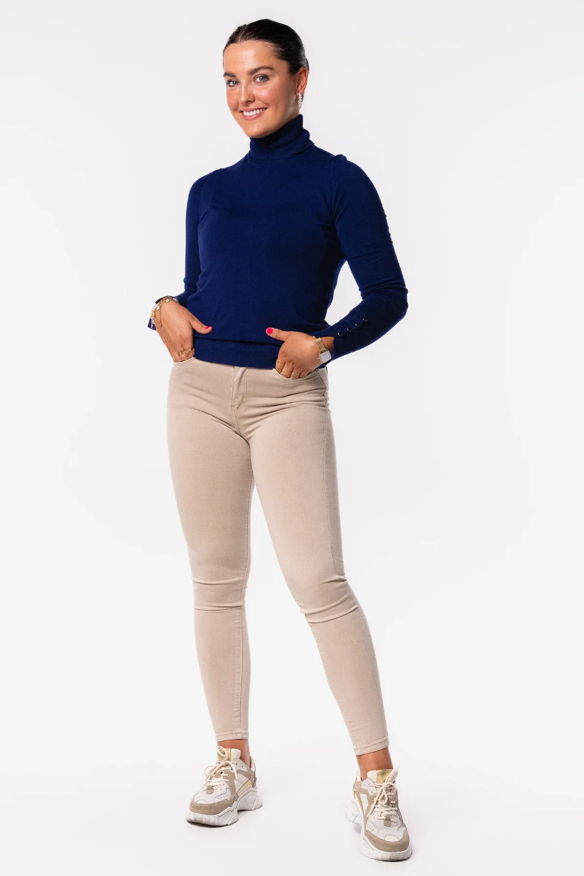 Heerlijke basic coltrui met gouden knoopjes aan beide mouwen. Hij is met ieder kleding stuk te combineren en maakt hem tot een echte musthave voor in jouw garderobe!