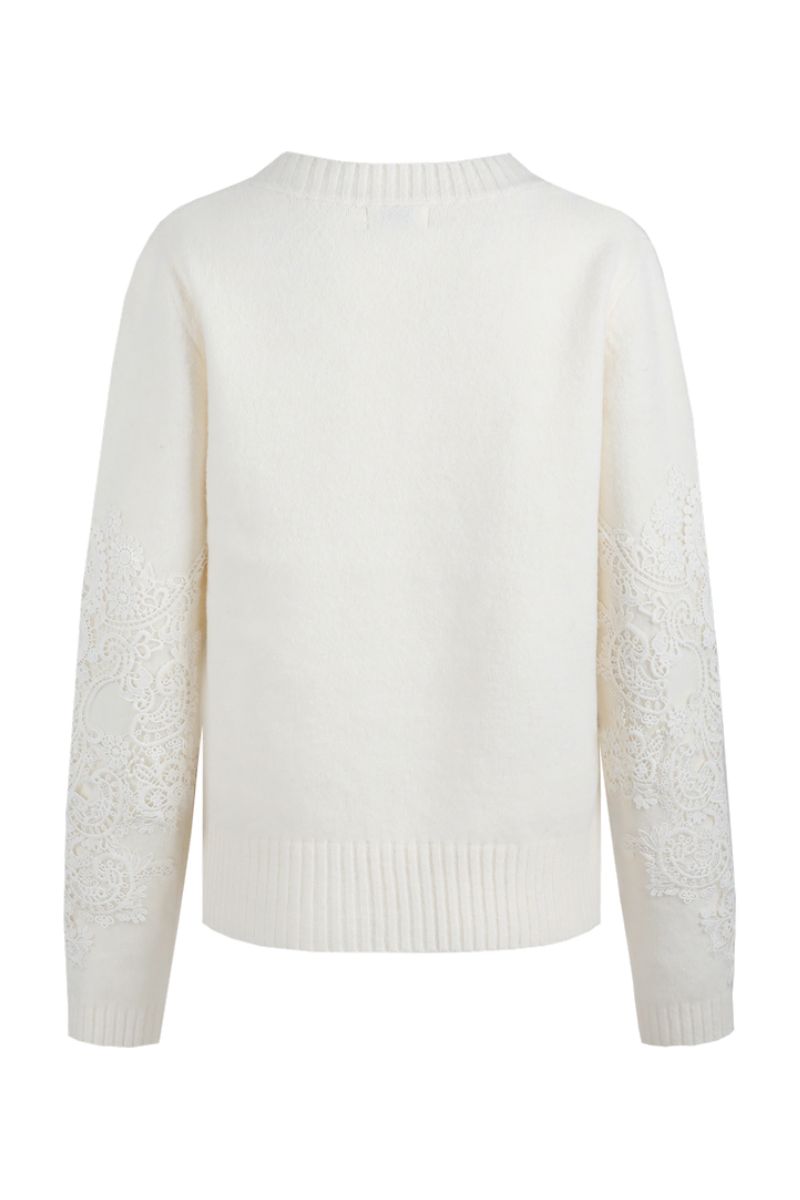 C&S The Label Katja Knit Pullover Wool White is een vrouwelijke knit met een elegante uitstraling. De tijdloze V-hals geeft de trui een klassieke touch, terwijl de kanten details op de mouwen zorgen voor een speels en verfijnd contrast.