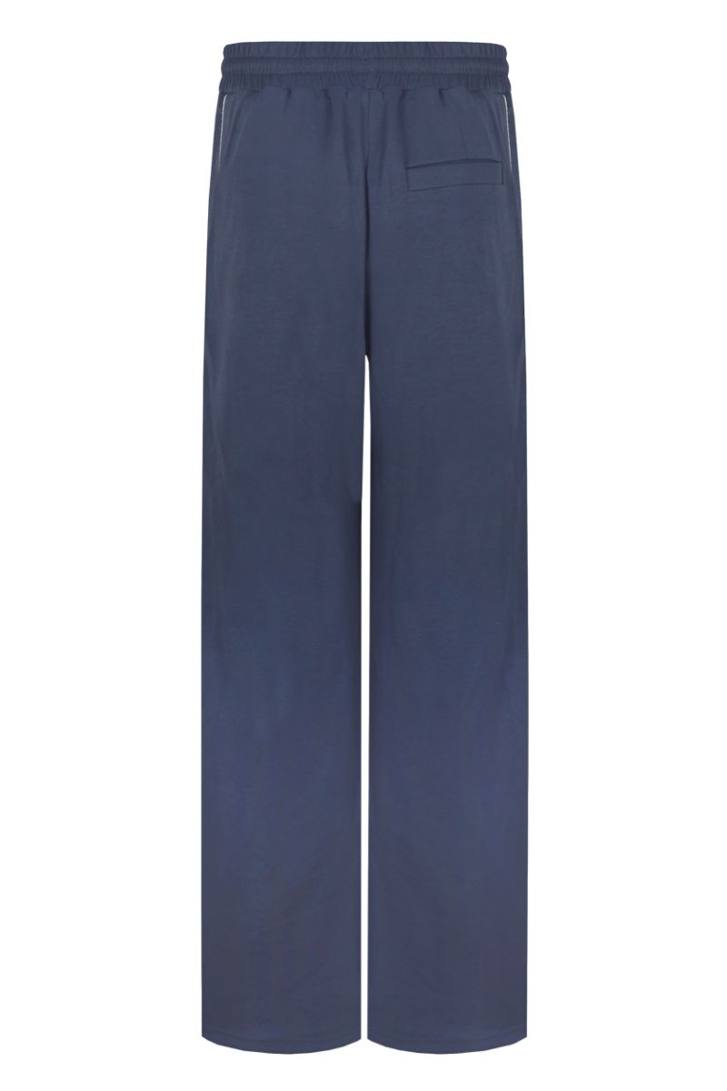 De soepele en ademende stof voelt licht aan en biedt optimaal comfort tijdens warme dagen of relaxte momenten. De donkerblauwe kleur geeft de broek een moderne en tijdloze uitstraling die makkelijk combineert met zowel lichte als diepe tinten.