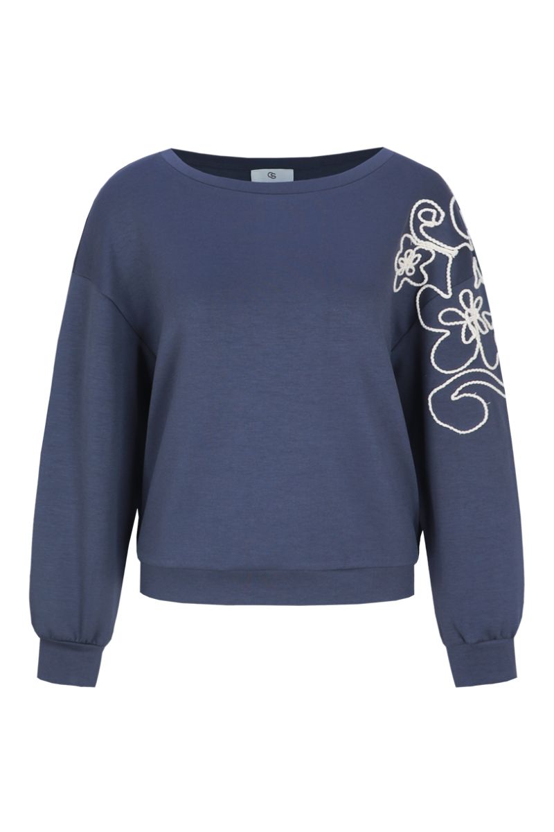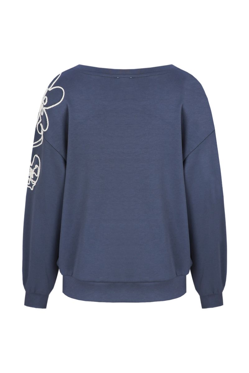 Het opvallende bloemenborduursel op de schouder trekt direct de aandacht en geeft de sweater een speelse en chique twist. Dit detail voegt een unieke charme toe en maakt de Wilhelmina sweater tot een echte eyecatcher