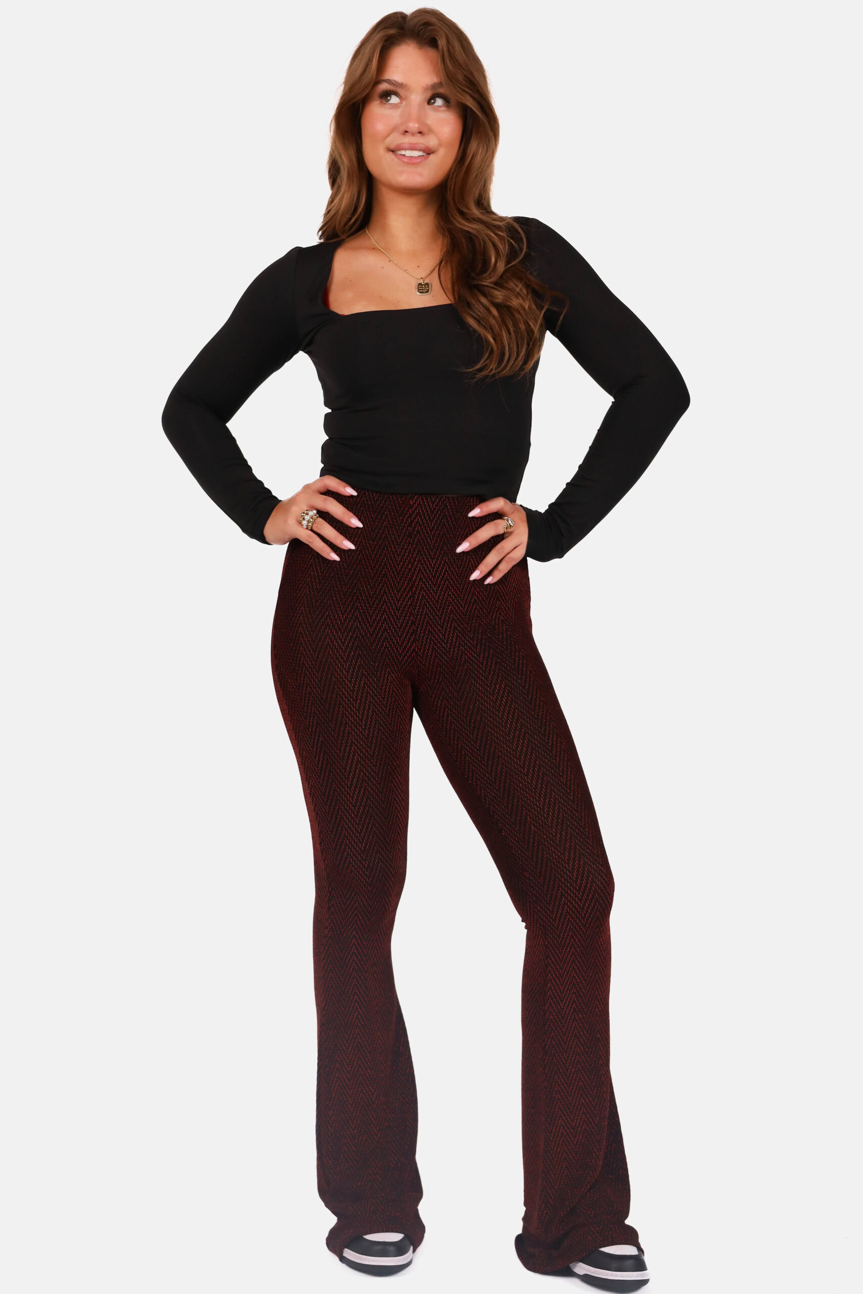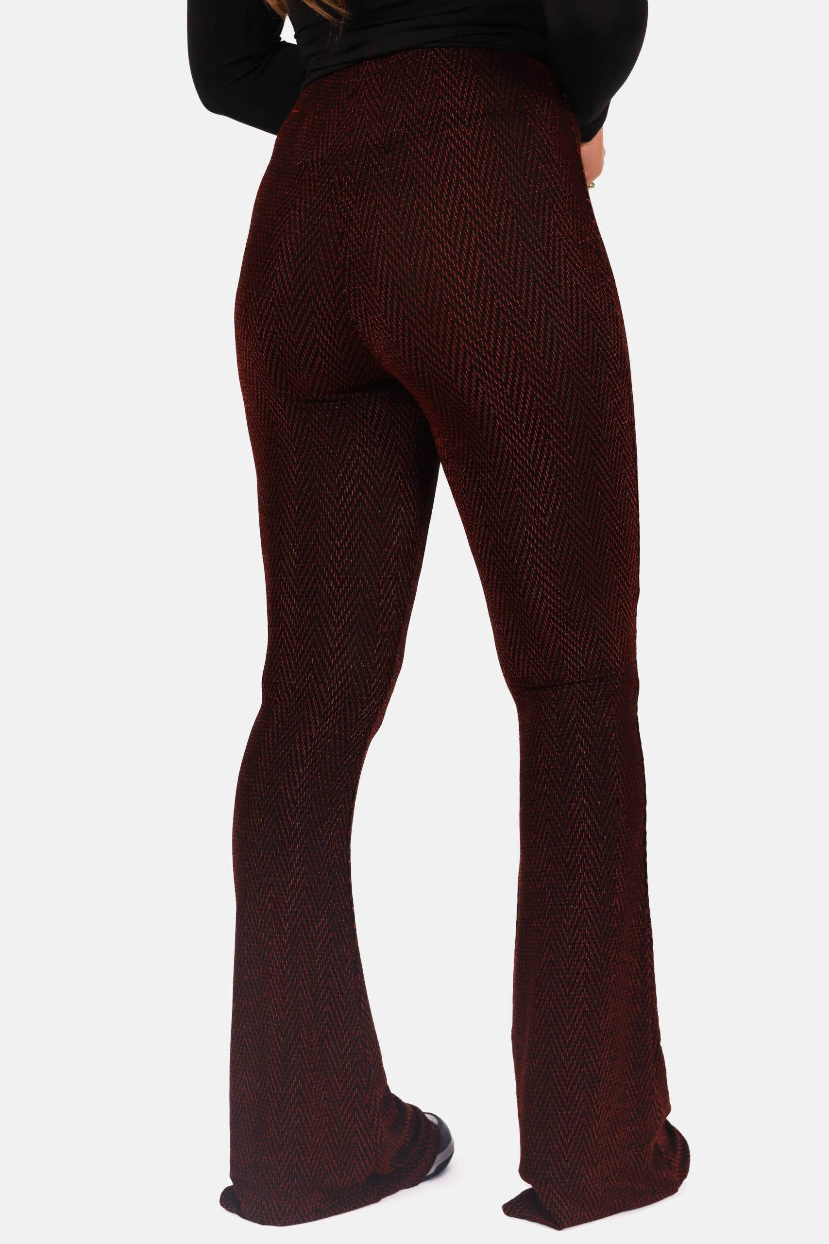 Deze flared broek met glittereffect combineert comfort met een vleugje glamour. De subtiele glans en het verfijnde visgraatmotief geven de broek een luxe uitstraling, terwijl de zachte, elastische stof zorgt voor een elegante pasvorm die de benen mooi laat uitkomen. Een tijdloos item dat zowel feestelijk als stijlvol oogt. De hoge taille en licht uitlopende pijpen creëren een vrouwelijk silhouet dat de benen optisch verlengt. Dankzij de soepele stretchkwaliteit en elastische tailleband voelt de broek prettig aan en blijft hij de hele dag mooi in vorm. De glanzende draad in de stof voegt een speelse twist toe, waardoor deze broek net dat beetje extra uitstraling krijgt. Combineer dit item met een aansluitende glittertop of een col in dezelfde stof voor een stijlvolle, gecoördineerde look. Ook met een blouse of blazer creëer je eenvoudig een elegante outfit voor een avond uit of een feestelijke gelegenheid.
