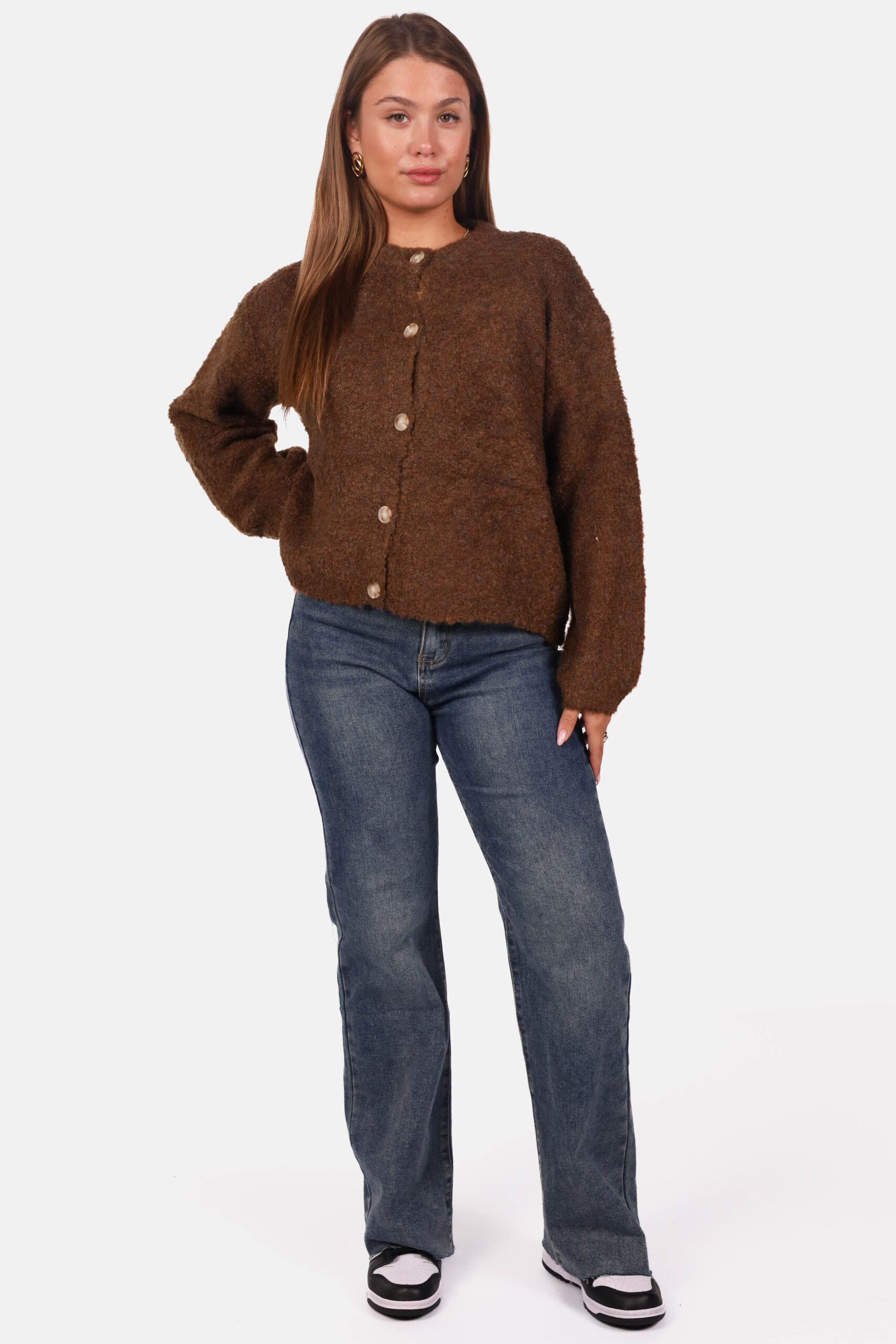 Dit gebreide vest wolblend met knopen is een tijdloze basic die comfort en stijl perfect combineert. De zachte textuur en subtiele structuur van de wolblend geven het vest een warme, luxe uitstraling, terwijl de klassieke knoopsluiting zorgt voor een veelzijdige look. Dankzij het minimalistische ontwerp past dit vest moeiteloos bij elke outfit, van casual tot gekleed. De rechte pasvorm en licht elastische stof zorgen voor een comfortabele fit die prettig aanvoelt en mooi in vorm blijft. De wolblend maakt het vest heerlijk warm, maar niet te zwaar, waardoor het ideaal is als extra laagje op koelere dagen. De fijne afwerking aan de randen en de stevige knopen benadrukken de kwaliteit en maken dit vest een duurzame toevoeging aan je garderobe. Combineer dit vest met een jeans en sneakers voor een ontspannen look, of draag het met een pantalon en laarzen voor een stijlvolle, dagelijkse outfit. Dankzij de zachte, rekbare stof en het tijdloze ontwerp kun je dit vest het hele jaar door dragen, een echte allrounder die niet mag ontbreken in je kast.