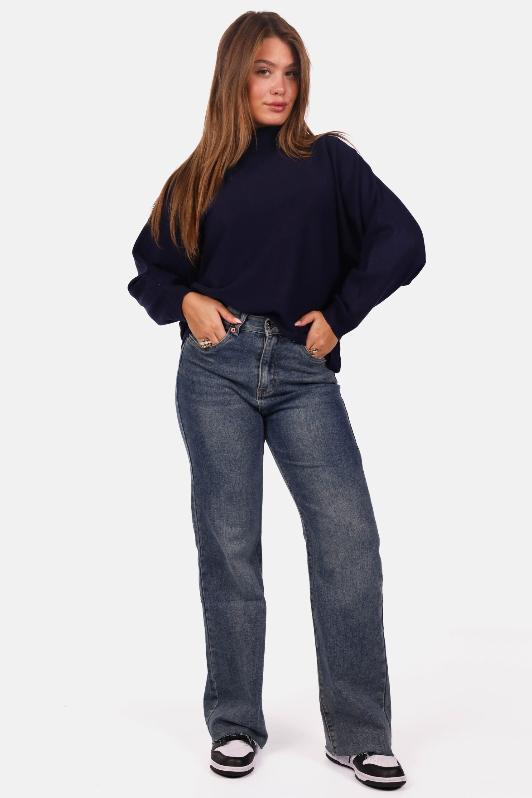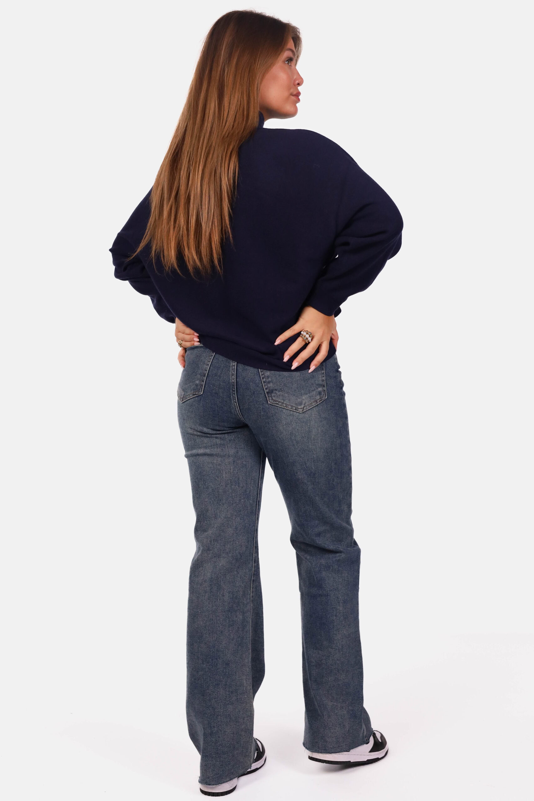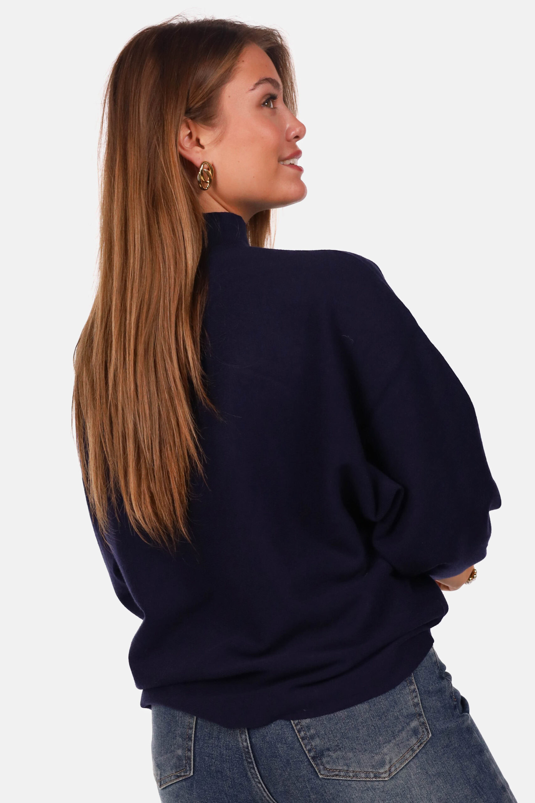 Gebreide trui met opstaande kraag donkerblauw