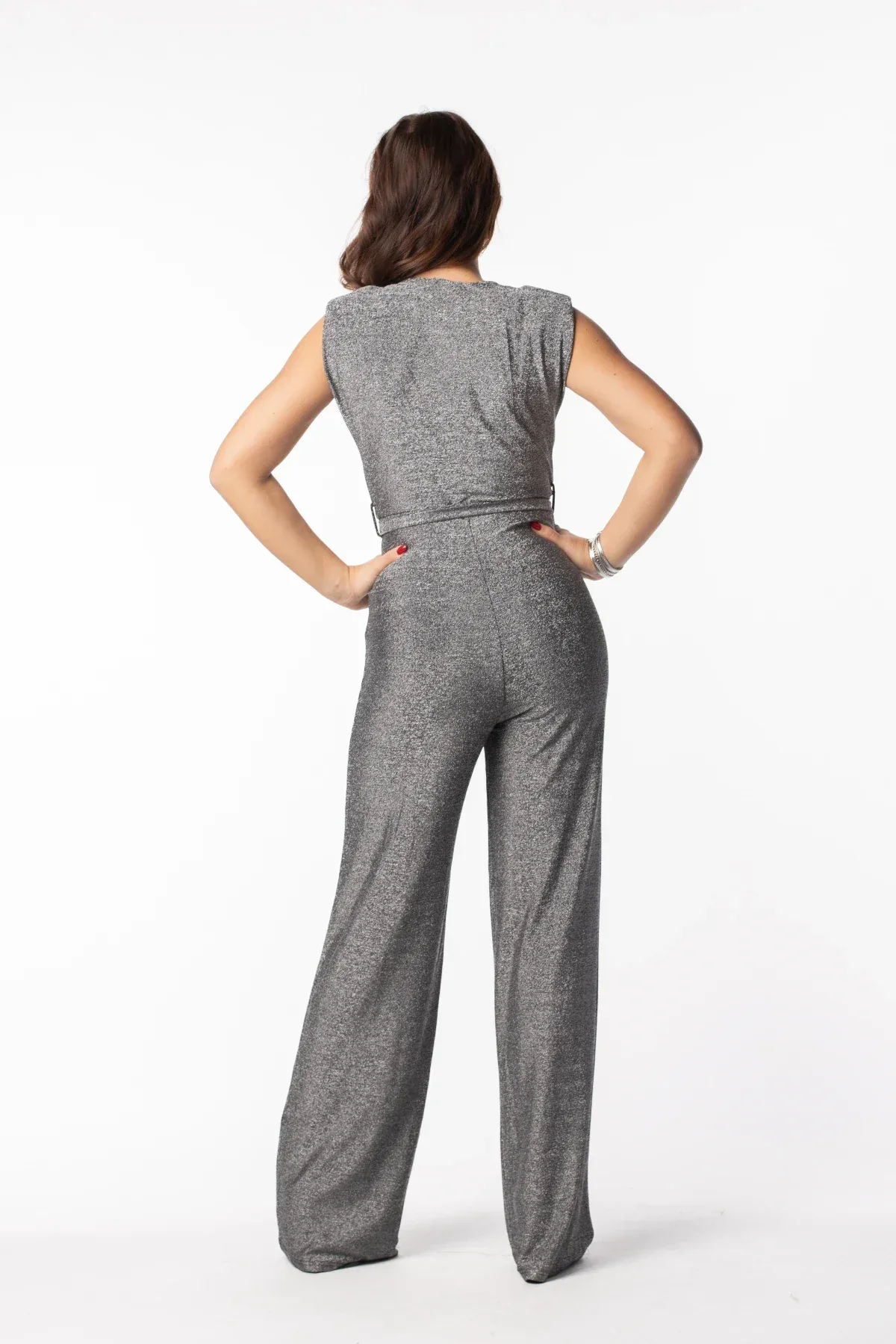 Deze jumpsuit is de perfecte combinatie tussen classy & stoer. Hij is gemaakt van een stretch lurex glitter stof en sluit daarom prachtig aan om je lichaam. De jumpsuit heeft glimmende gouden knopen op beide schouders en een bijpassend ceintuur. Laat die feestjes maar komen, met deze jumpsuit ben jij er klaar voor!