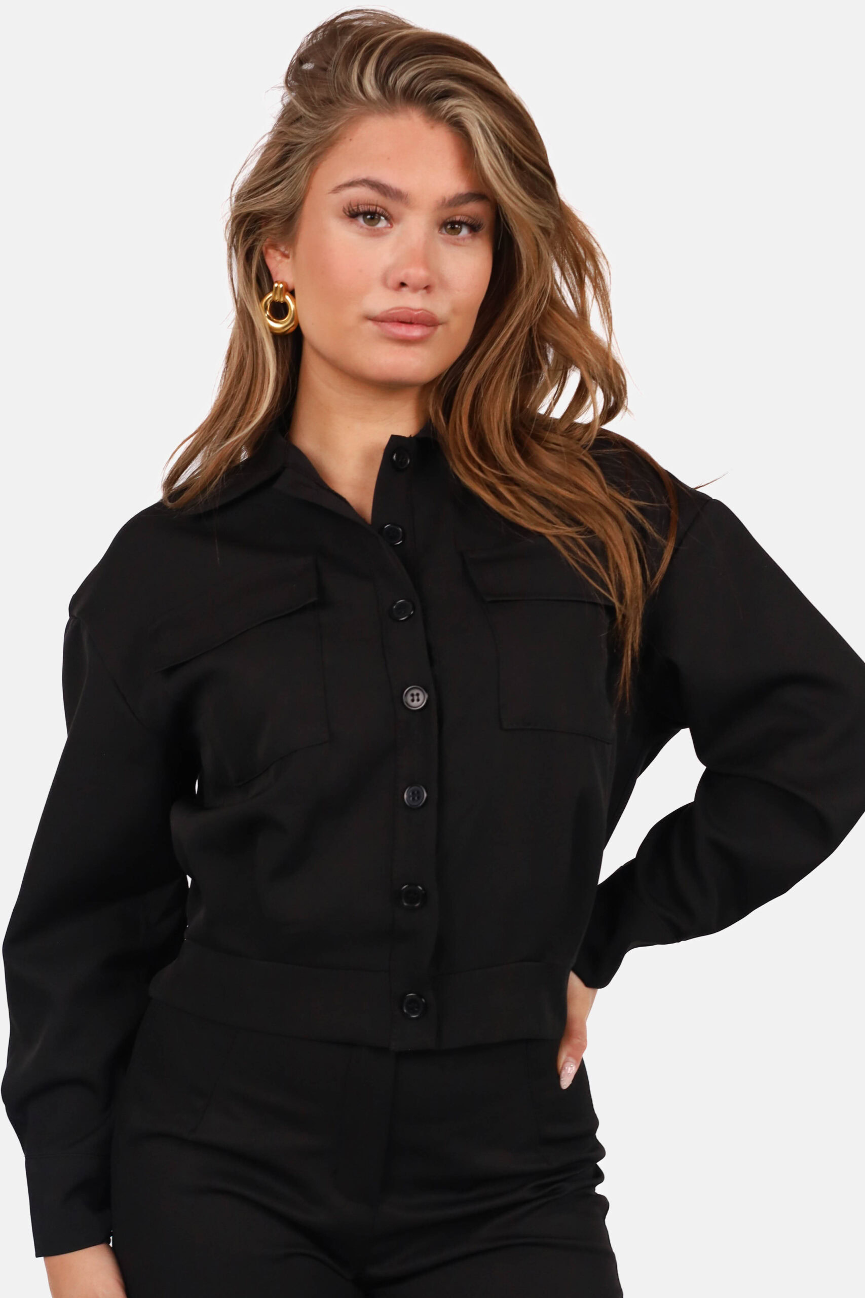 Kort jasje met knoopsluiting zwart