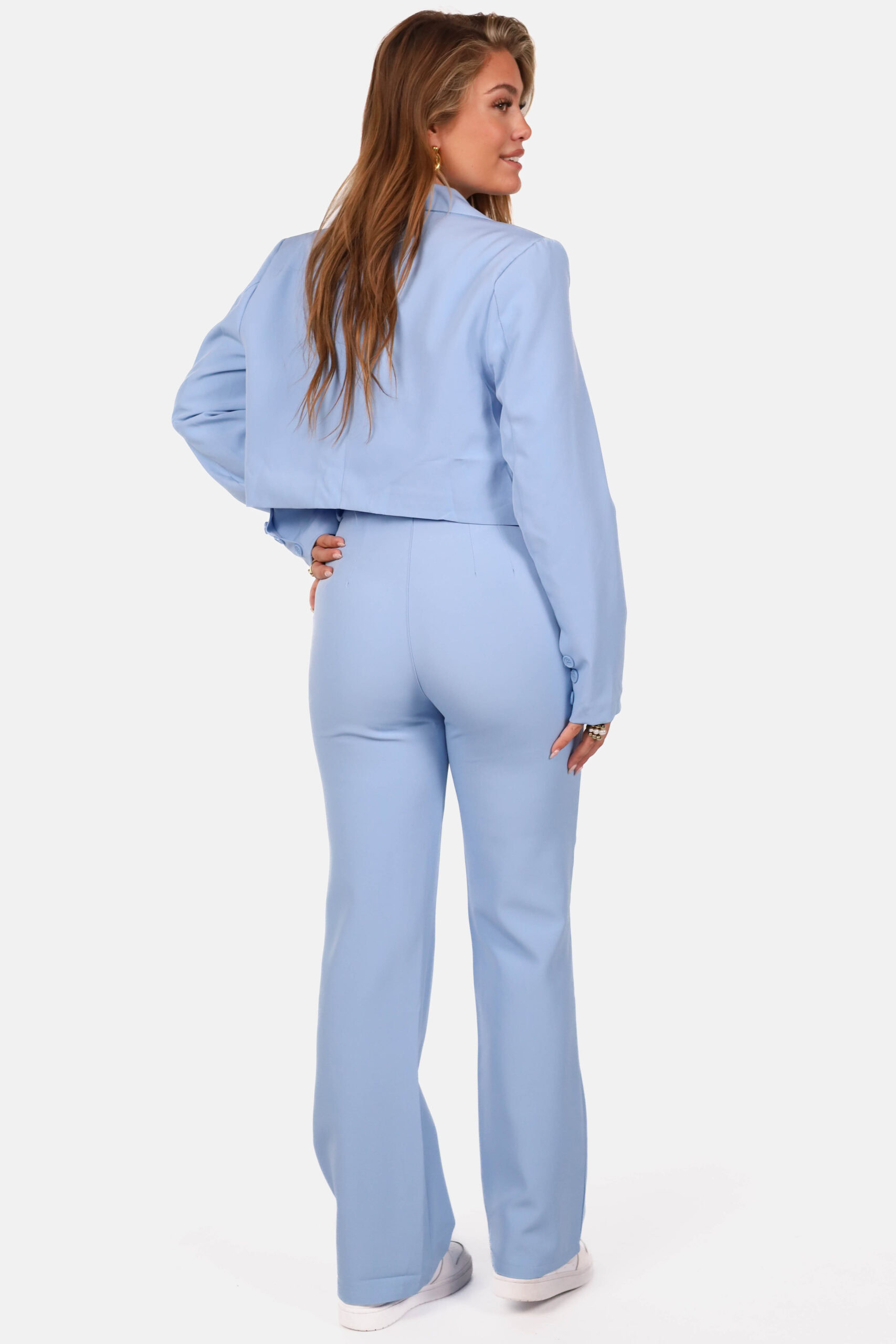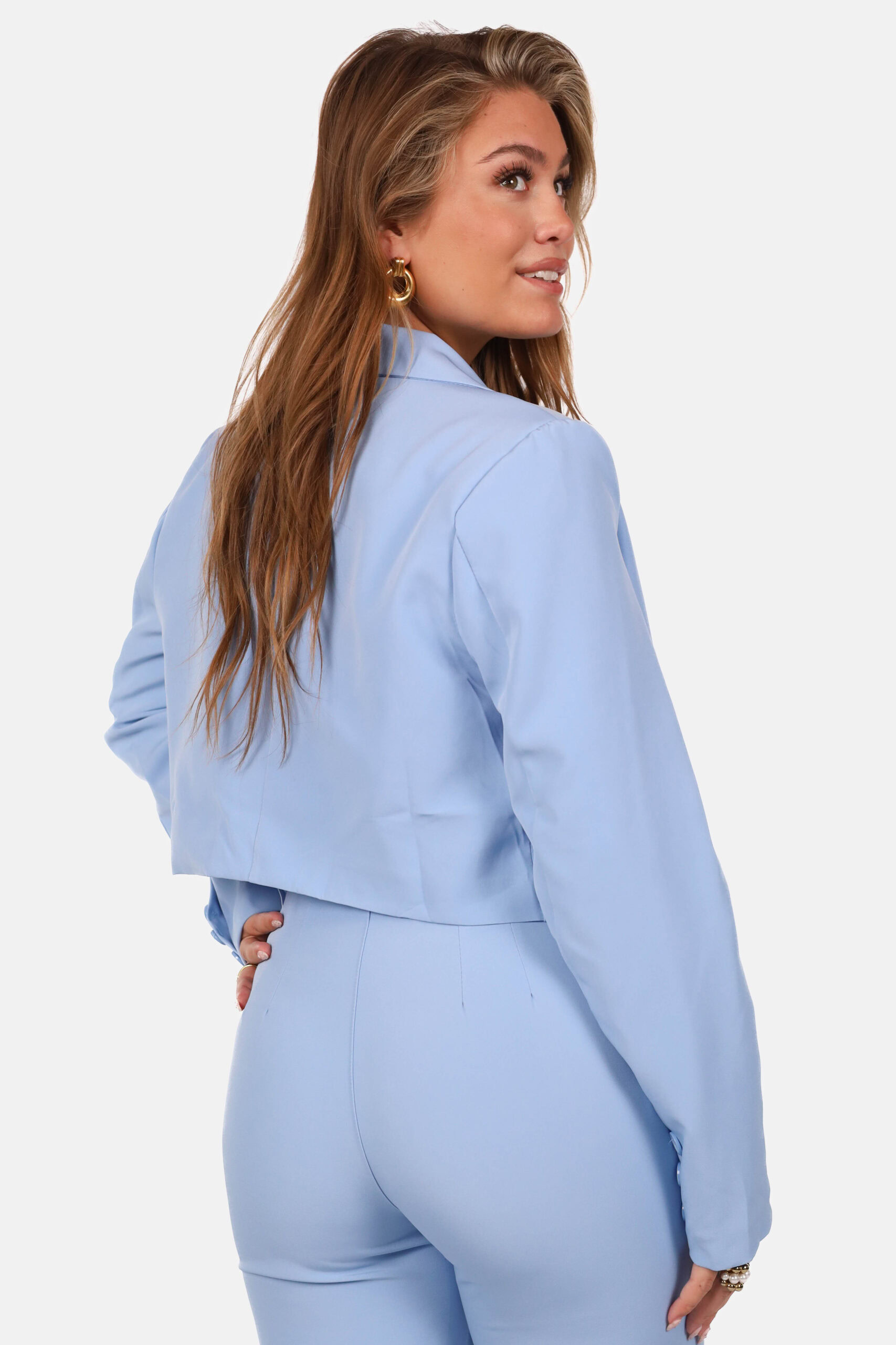 Deze korte blazer met moderne pasvorm is een stijlvol statementstuk dat moeiteloos elegantie en power combineert. De korte lengte geeft een eigentijdse uitstraling, terwijl het cleane design en de rechte schouders zorgen voor een strakke, moderne look. De blazer sluit met één knoop en valt mooi recht, waardoor hij een perfecte balans biedt tussen klassiek en trendy. De licht elastische stof voelt stevig en glad aan, met voldoende stretch voor optimaal draagcomfort. De korte snit benadrukt de taille en is ideaal te combineren met een high waist pantalon of rok. Dankzij de tijdloze kleur en minimalistische afwerking kun je deze blazer zowel zakelijk als casual dragen, van kantoor tot avondje uit. Draag hem als set met de bijpassende pantalon uit dezelfde Getdrezzed-collectie voor een gecoördineerde, moderne look. Ook mooi over een top of blouse voor een gestroomlijnde outfit die moeiteloos stijl en klasse uitstraalt. Dit item komt uit de Getdrezzed-collectie en is perfect te combineren met andere stukken uit dezelfde lijn. Of je het nu solo draagt of als set, je kiest voor een moderne, stijlvolle uitstraling met de vertrouwde pasvorm van Getdrezzed.