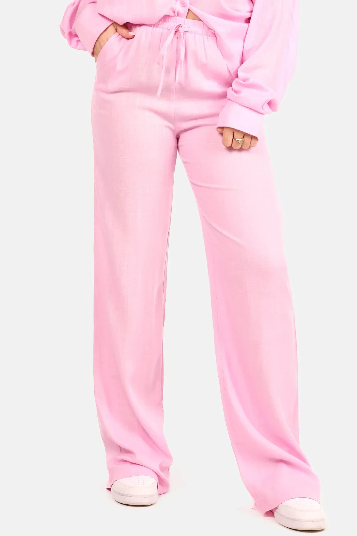 Linnen wide leg broek roze