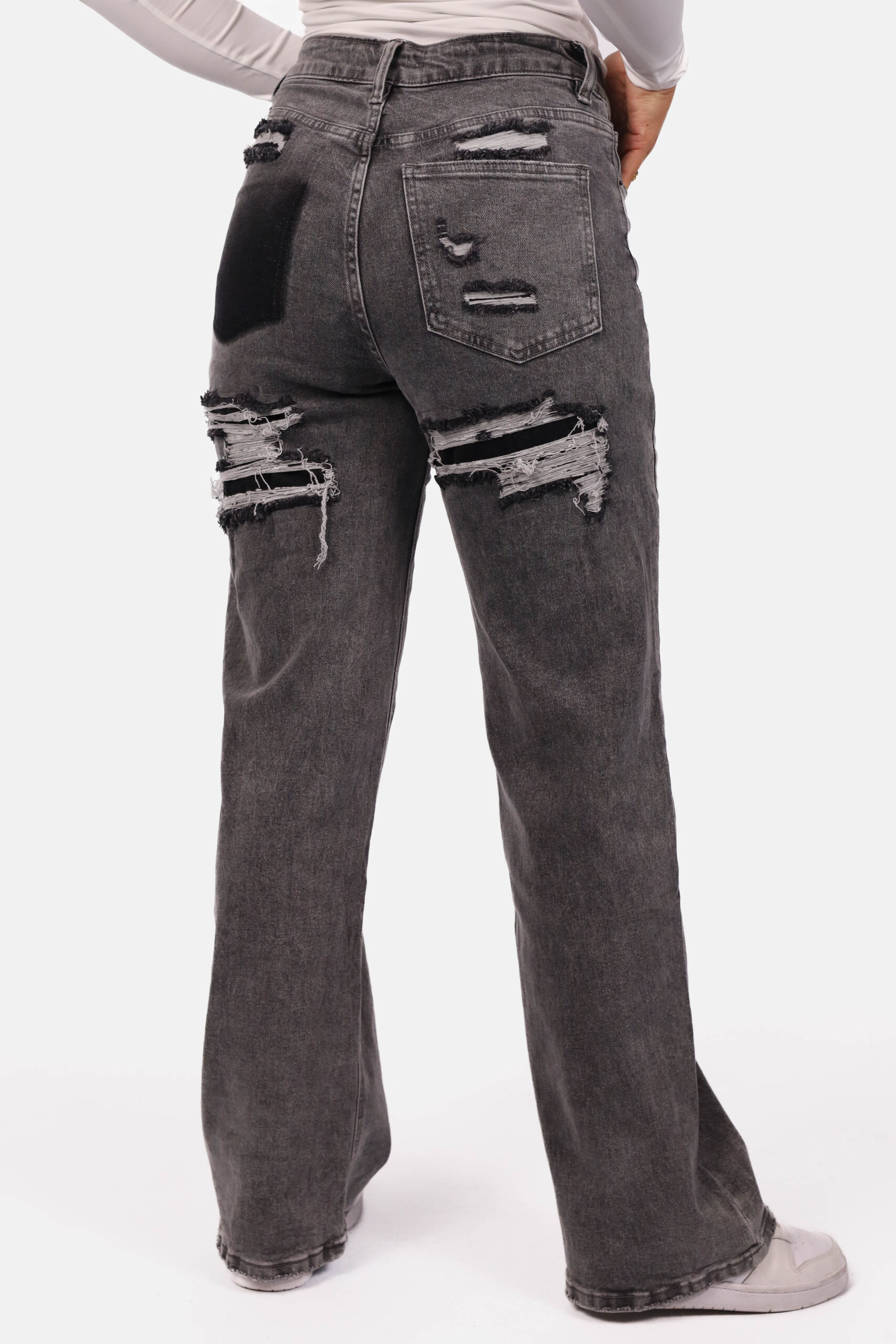 Loose straight jeans met destroyed details grijs
