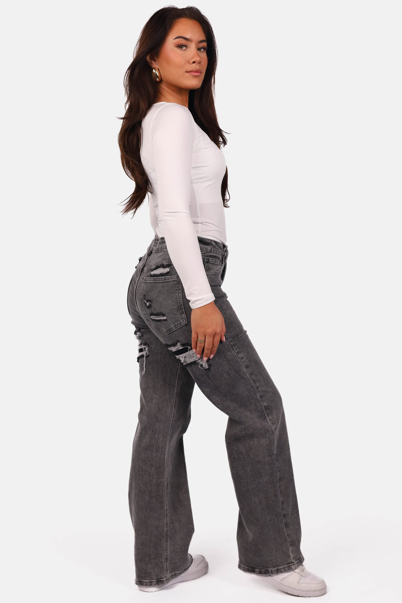 Deze loose straight jeans met destroyed details is een perfecte mix van stoer en draagbaar. De rechte, losse pijp zorgt voor een ontspannen pasvorm die comfortabel aanvoelt en tegelijkertijd helemaal past binnen het huidige denimbeeld. De jeans valt mooi langs het been zonder strak te zitten, waardoor hij geschikt is voor dagelijks gebruik én eenvoudig te combineren is met zowel basics als meer uitgesproken items. De high waist taille zorgt voor een flatterende fit en geeft de jeans een moderne, tijdloze uitstraling. Wat deze jeans onderscheidt, zijn de bewust geplaatste destroyed details aan de achterzijde. Deze geven de jeans een subtiele edgy touch zonder dat het geheel te heftig wordt. Hierdoor blijft het model veelzijdig en geschikt voor verschillende stijlen. Combineer deze jeans met een eenvoudige top en sneakers voor een casual look, of draag hem met een blazer en enkellaarsjes voor een meer geklede uitstraling. Dankzij de stretch in de stof beweegt de jeans prettig mee en behoudt hij zijn vorm, ook na meerdere draagmomenten. De loose straight jeans is ontworpen voor comfort, stijl en duurzaamheid. De stevige denimkwaliteit voelt zacht aan, maar blijft vormvast en betrouwbaar in gebruik. Dit maakt het een jeans waar klanten langdurig plezier van hebben. Een echte must have voor wie op zoek is naar een eigentijdse jeans met karakter, zonder concessies te doen aan draagcomfort en pasvorm.