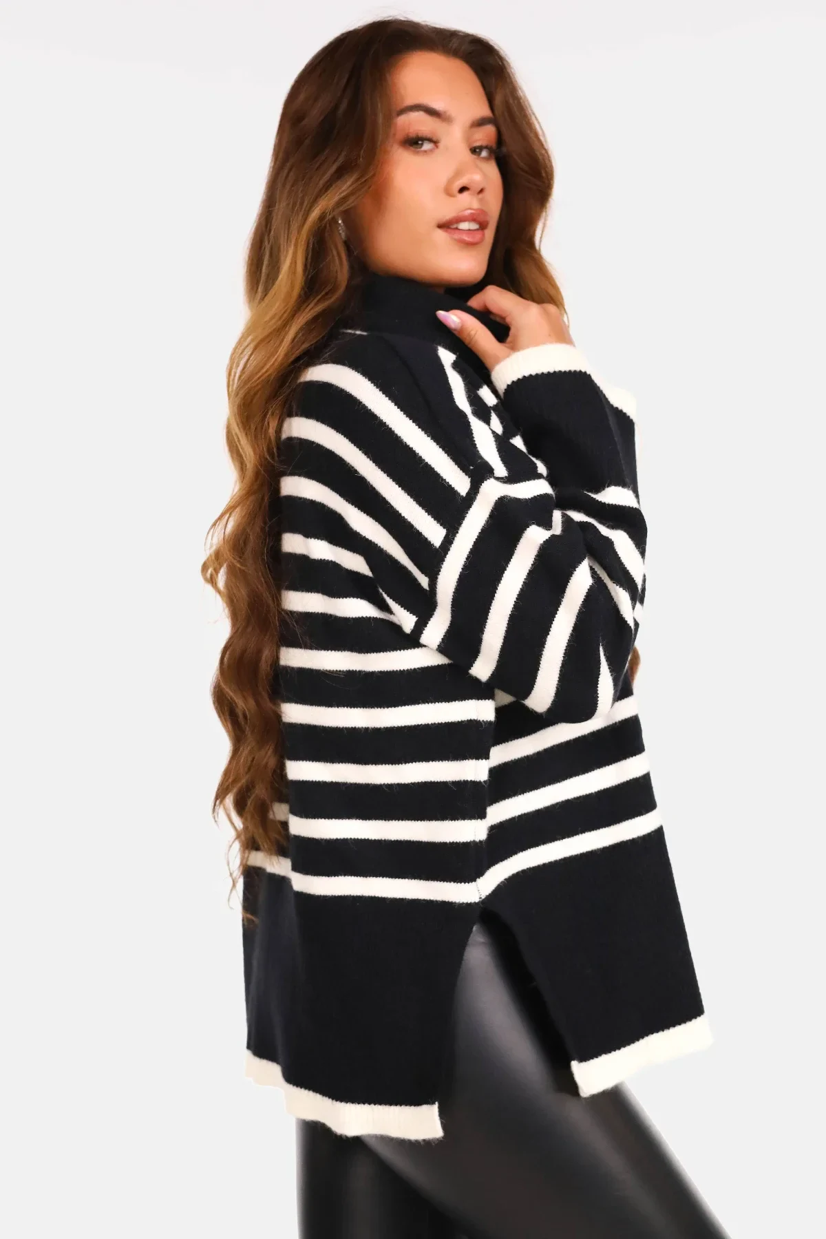 Oversized coltrui split gestreept zwart