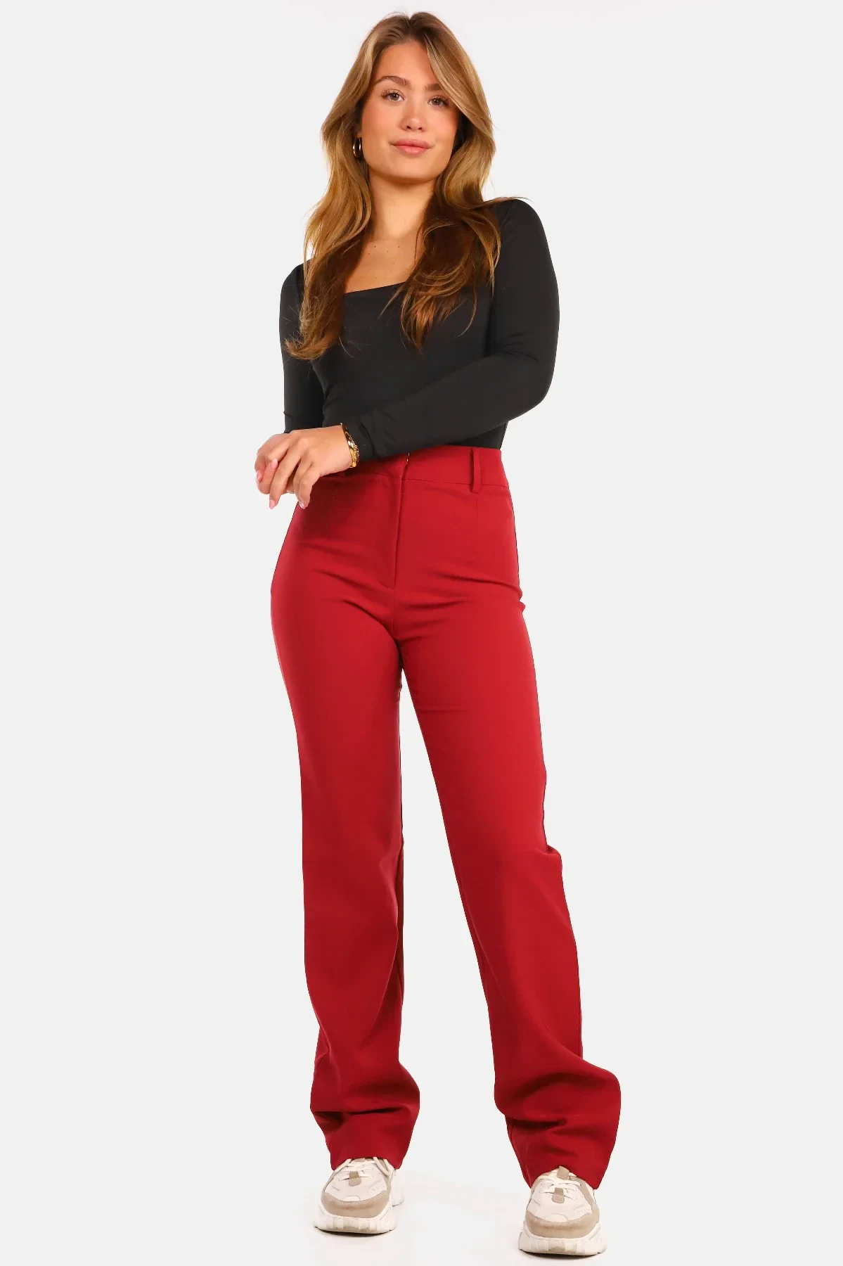Geef je garderobe een stijlvolle upgrade met deze premium straight-fit pantalon. Het strakke ontwerp en de hoogwaardige afwerking maken deze broek perfect voor zowel formele gelegenheden als dagelijkse looks. Het model heeft een rechte pasvorm die je figuur subtiel accentueert en biedt tegelijkertijd optimaal draagcomfort. De fijne stof voelt zacht aan en beweegt soepel met je mee, waardoor deze pantalon zowel praktisch als elegant is. Deze veelzijdige pantalon laat zich eenvoudig combineren met een nette blouse en blazer voor een professionele outfit, of met een casual top voor een meer ontspannen uitstraling. De subtiele details en de moderne snit zorgen ervoor dat deze broek bij elke gelegenheid stijlvol oogt. Een tijdloze must-have die nooit uit de mode raakt. De luxueuze stof geeft niet alleen een verfijnde uitstraling, maar zorgt er ook voor dat de broek zijn vorm behoudt, zelfs na veelvuldig dragen. Hierdoor wordt deze pantalon gegarandeerd een vaste favoriet in je kledingkast.
