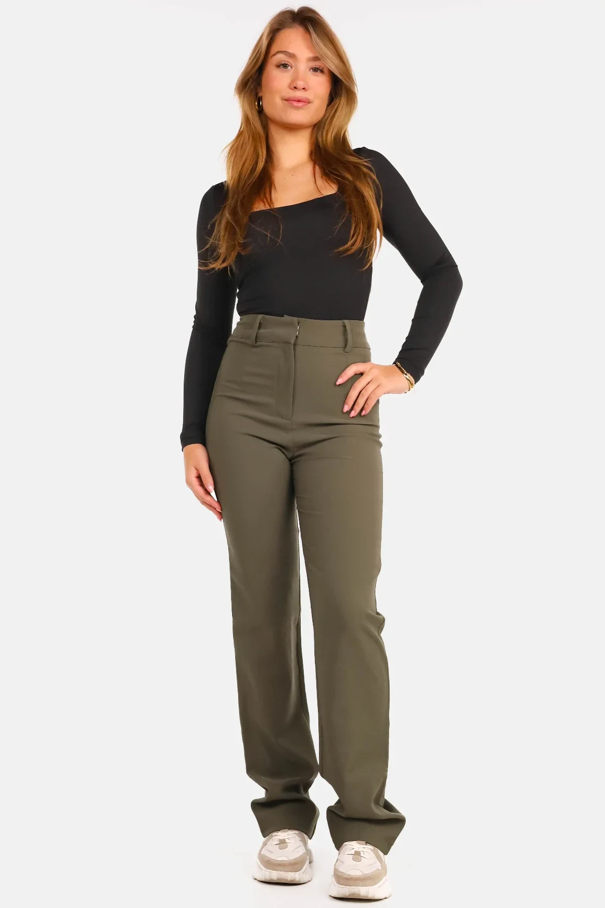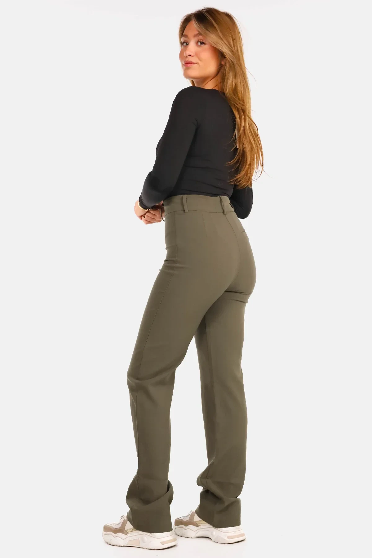 Geef je garderobe een stijlvolle upgrade met deze premium straight-fit pantalon. Het strakke ontwerp en de hoogwaardige afwerking maken deze broek perfect voor zowel formele gelegenheden als dagelijkse looks. Het model heeft een rechte pasvorm die je figuur subtiel accentueert en biedt tegelijkertijd optimaal draagcomfort. De fijne stof voelt zacht aan en beweegt soepel met je mee, waardoor deze pantalon zowel praktisch als elegant is. Deze veelzijdige pantalon laat zich eenvoudig combineren met een nette blouse en blazer voor een professionele outfit, of met een casual top voor een meer ontspannen uitstraling. De subtiele details en de moderne snit zorgen ervoor dat deze broek bij elke gelegenheid stijlvol oogt. Een tijdloze must-have die nooit uit de mode raakt. De luxueuze stof geeft niet alleen een verfijnde uitstraling, maar zorgt er ook voor dat de broek zijn vorm behoudt, zelfs na veelvuldig dragen. Hierdoor wordt deze pantalon gegarandeerd een vaste favoriet in je kledingkast.