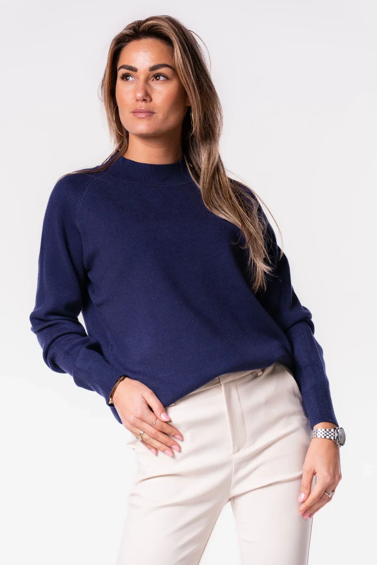 Comfy and fashionable, dat is wat deze trui beide heeft! Met deze trui creëer jij eindeloos veel looks. Het is echt de perfecte basic trui!