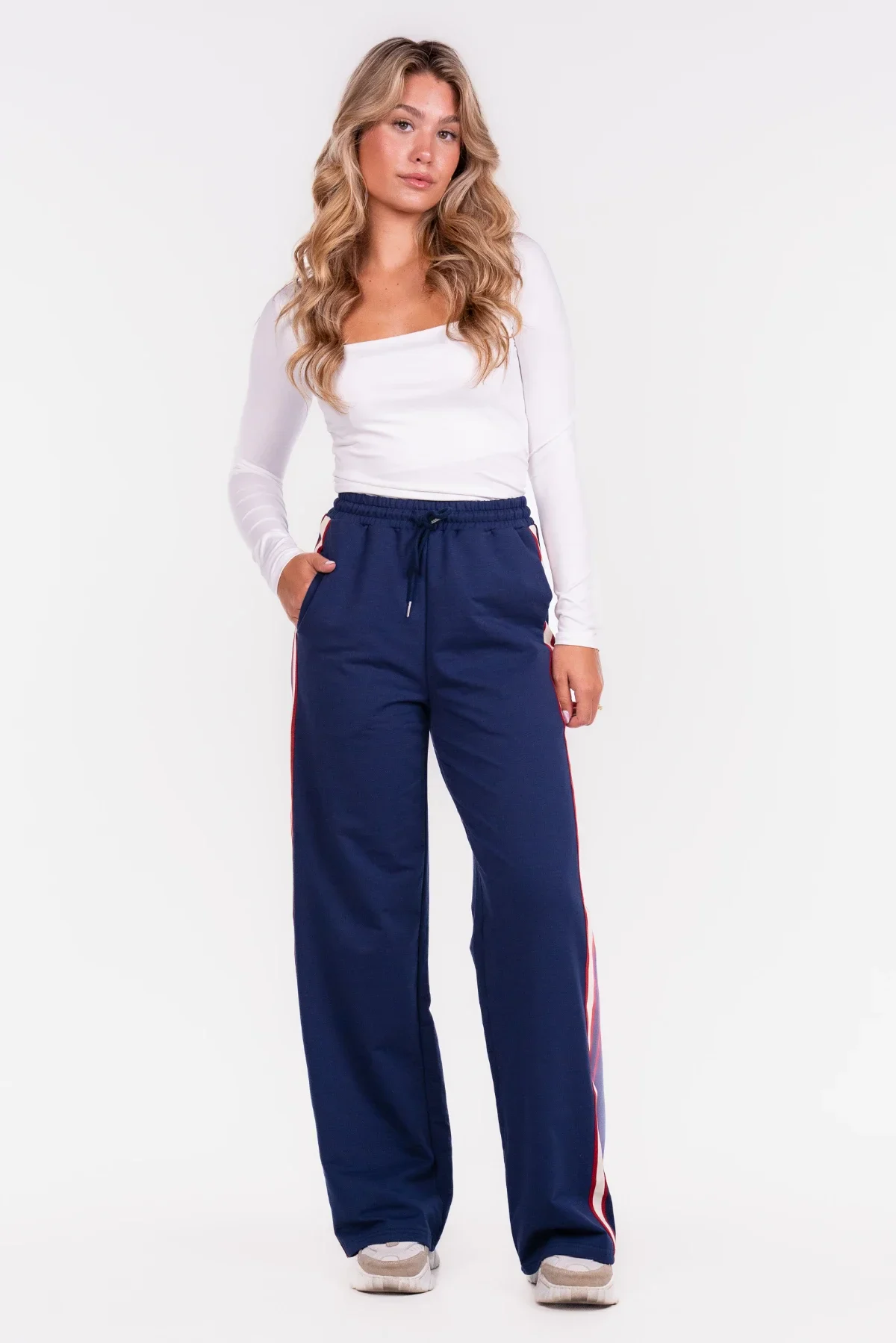 Musthave alert! Deze gave wide leg broek is helemaal on trend op dit moment! De strepen aan de zijkanten geven de broek een stoere touch. De broek is gemaakt van een soepele stof en heeft daardoor een perfecte pasvorm. Shop hem nu!