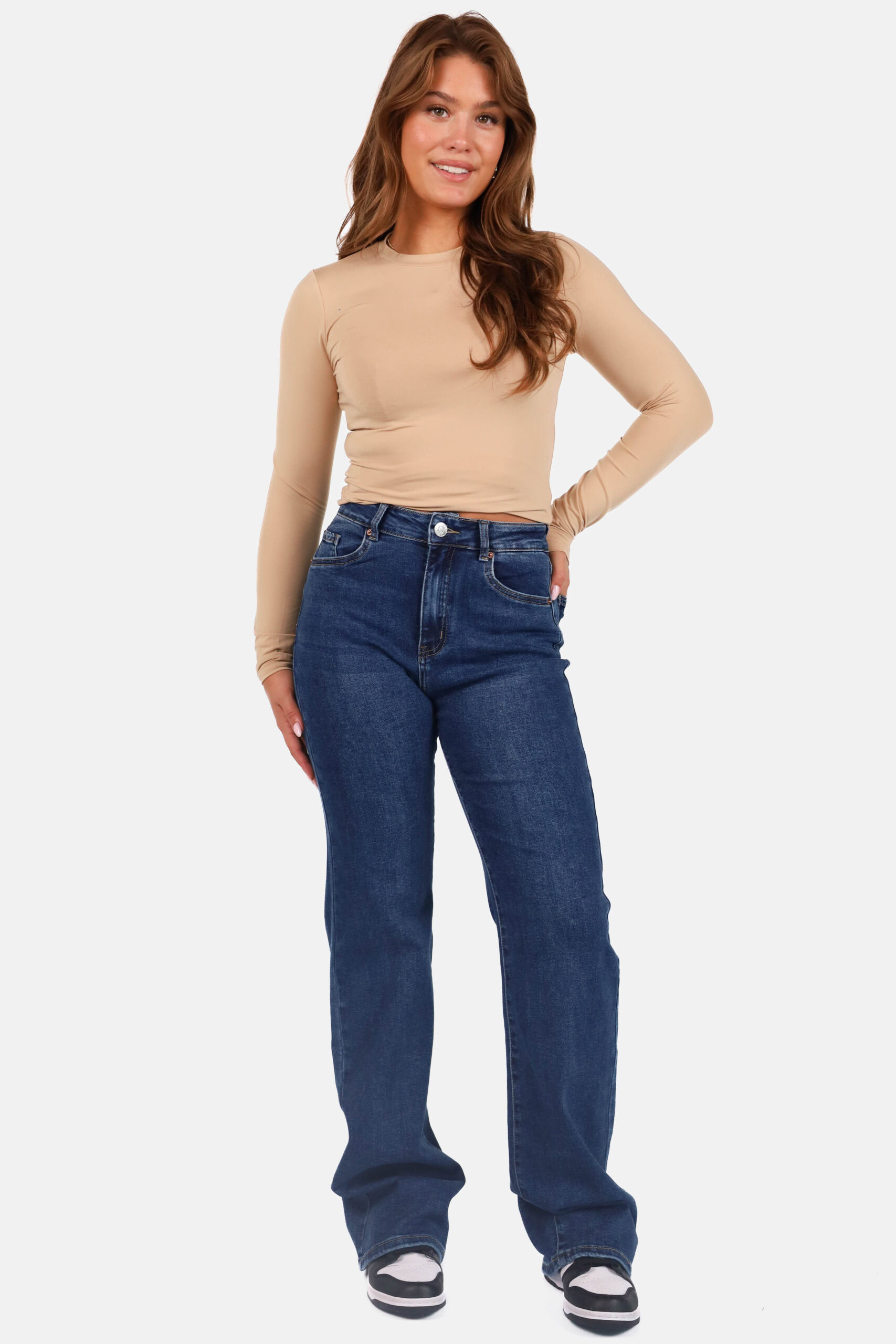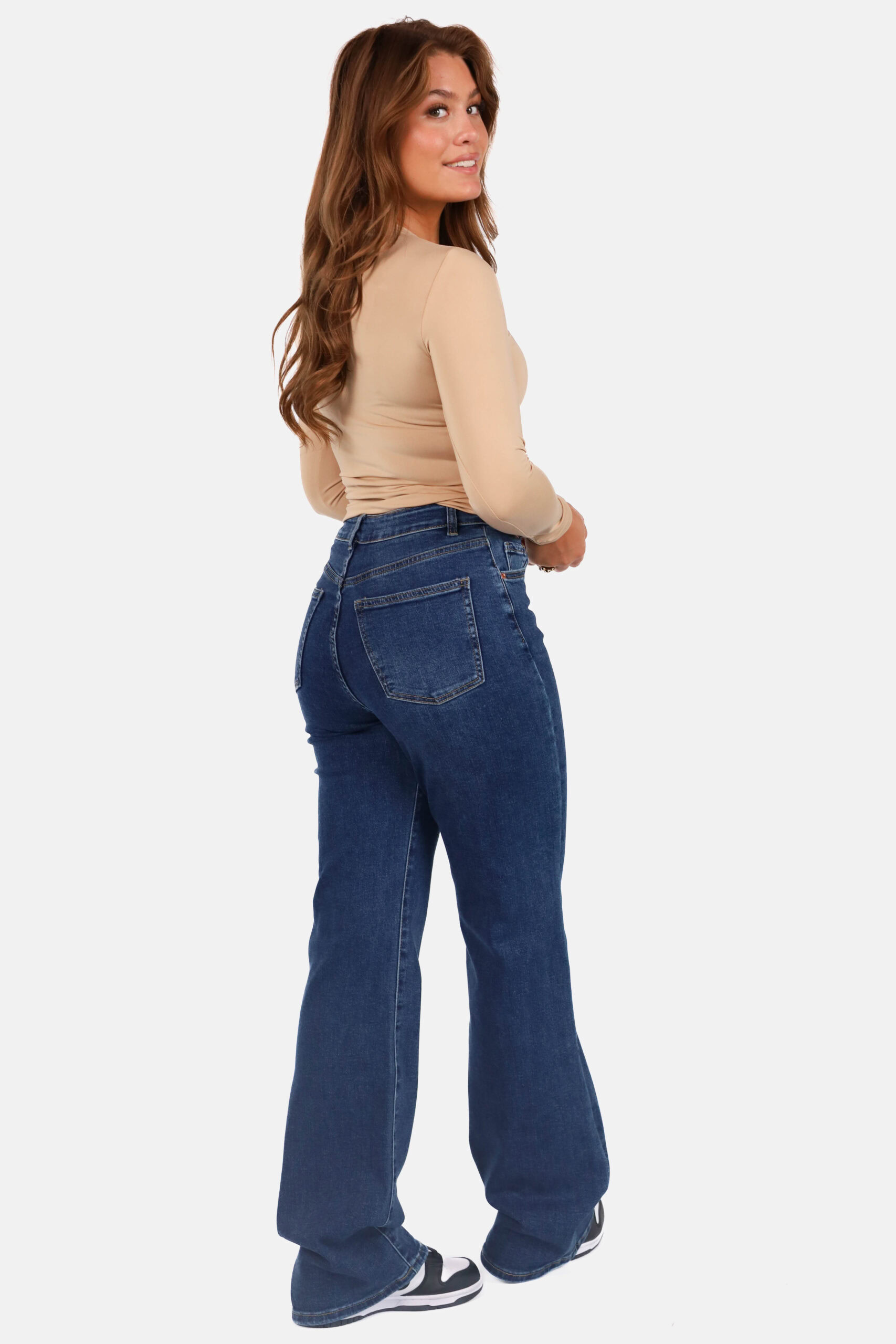 De wide leg jeans extra long is ontworpen voor wie houdt van een moderne pasvorm met extra lengte. De hoge taille en wijde pijpen zorgen voor een elegant, verlengd silhouet dat de benen optisch langer laat lijken. Dankzij de extra lengte valt de broek perfect over sneakers of hakken, ideaal voor wie net dat beetje extra lengte zoekt in haar denim. De zachte denimkwaliteit met lichte stretch zorgt voor optimaal draagcomfort en behoudt zijn vorm, ook na veelvuldig dragen. De combinatie van een klassieke five-pocketstijl en tijdloze wassing maakt dit een veelzijdig item dat niet mag ontbreken in je garderobe. Combineer deze wide leg jeans met een aansluitende top of blazer voor een stijlvolle, vrouwelijke look. Of draag hem casual met een T-shirt en sneakers voor een relaxte, everyday outfit met een moderne twist.
