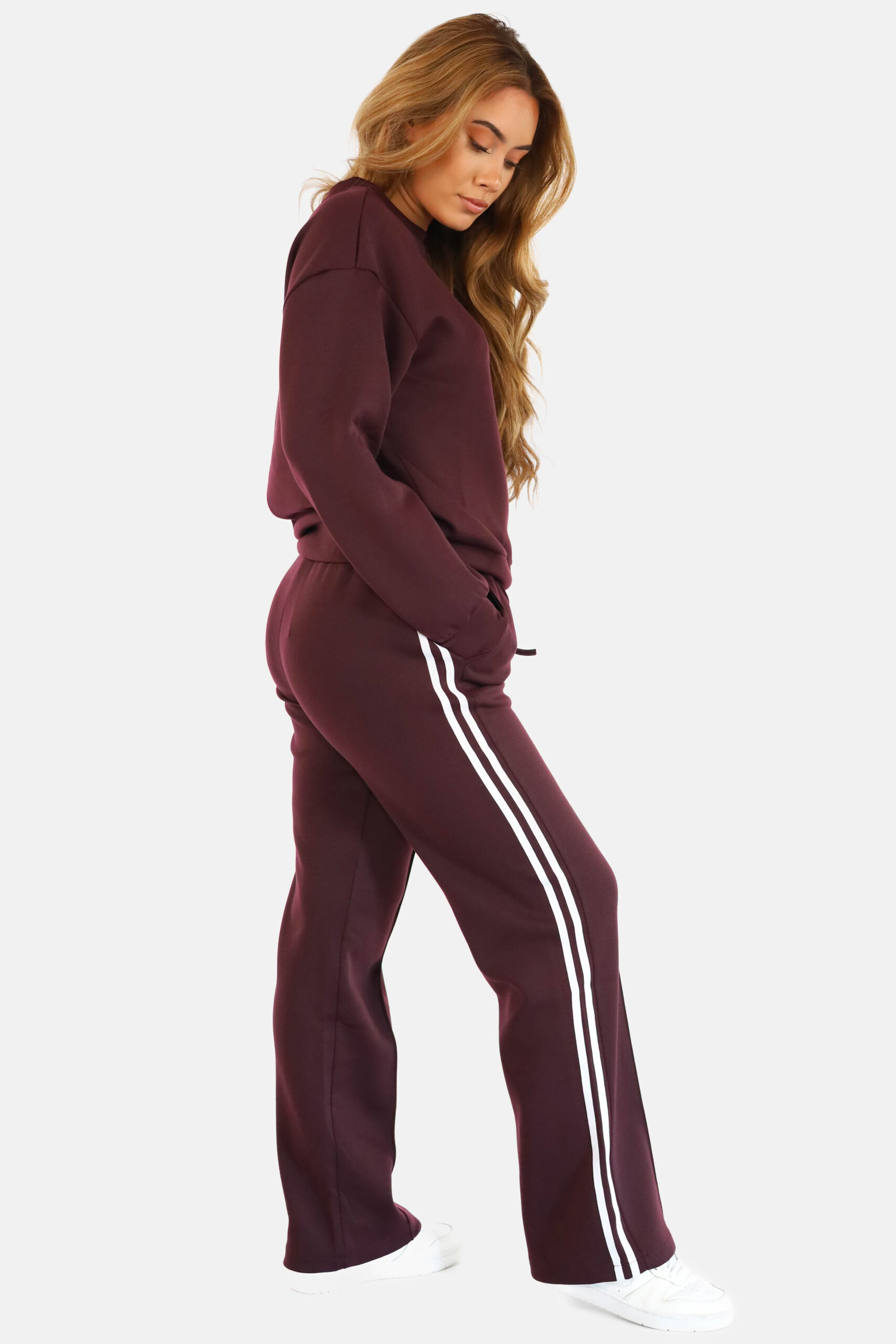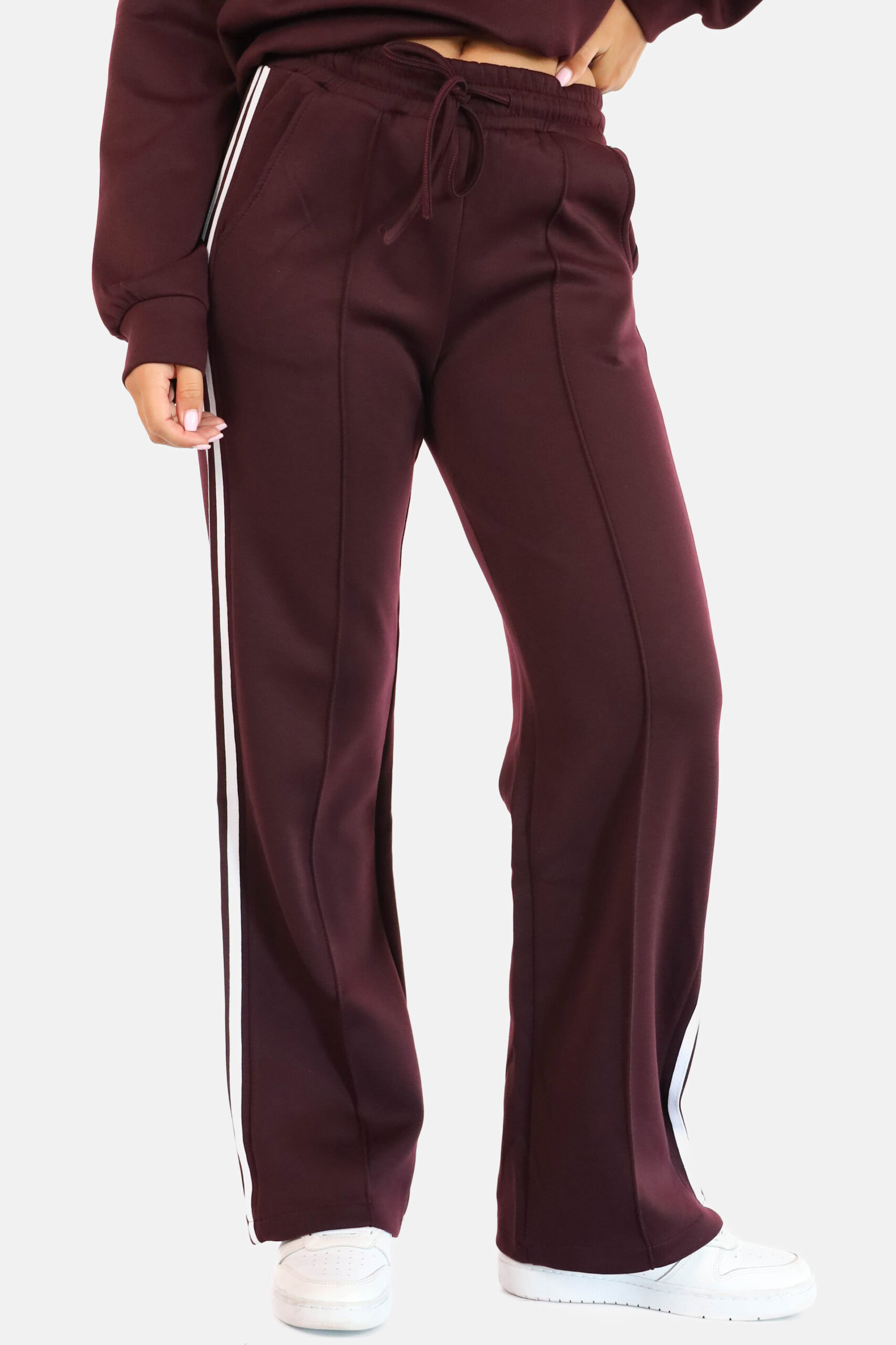 Deze joggingbroek met wijde pijpen is de perfecte mix van sportief en stijlvol. De strepen langs de zijkanten geven een eigentijdse twist, terwijl de relaxte fit zorgt voor een comfortabele look waar je altijd op kunt rekenen. De elastische tailleband biedt de hele dag door draaggemak, of je nu onderweg bent of gewoon relaxed thuis. De rechte pijpen geven een verlengend effect aan je silhouet en laten zich makkelijk combineren met sneakers, een tanktop of een oversized hoodie. Dankzij het tijdloze design en het zachte materiaal is deze broek een must-have voor elke casual garderobe. Draag hem solo of met een bijpassende top voor een coördinerende set die altijd goed zit.