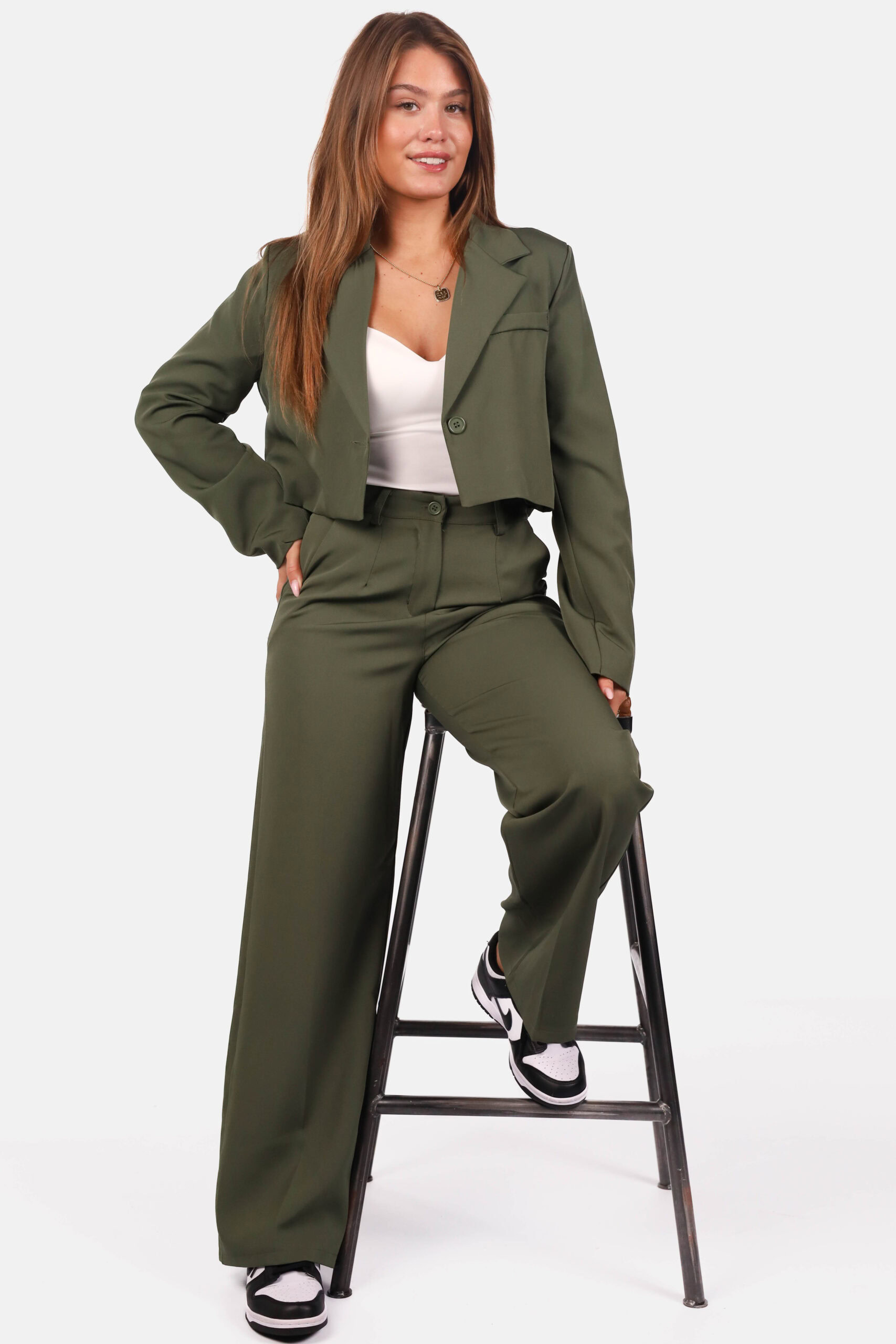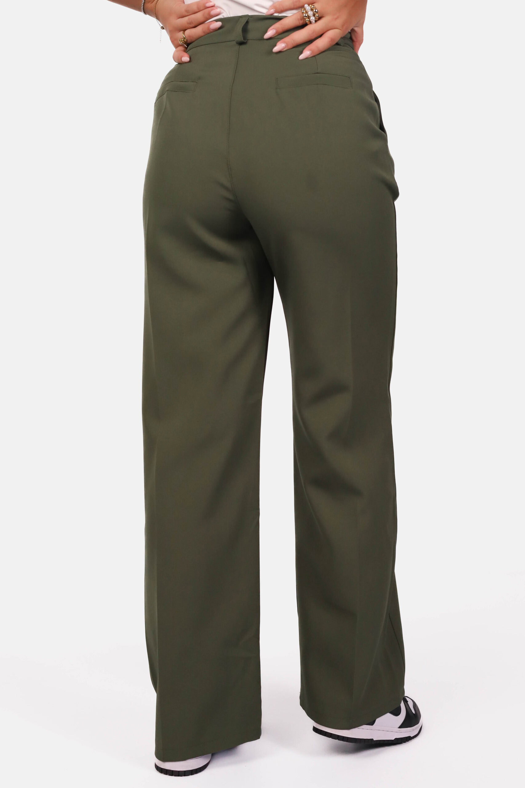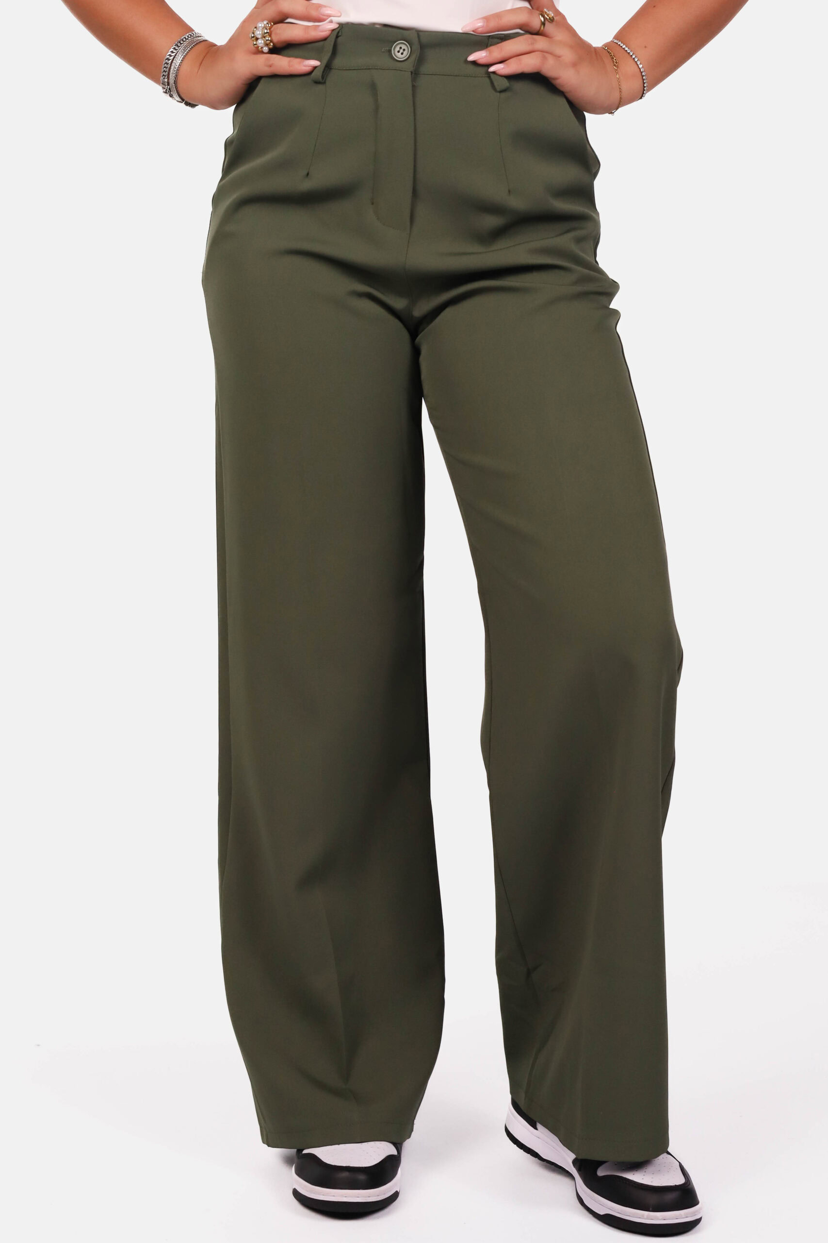 Wide leg pantalon hoge taille kaki