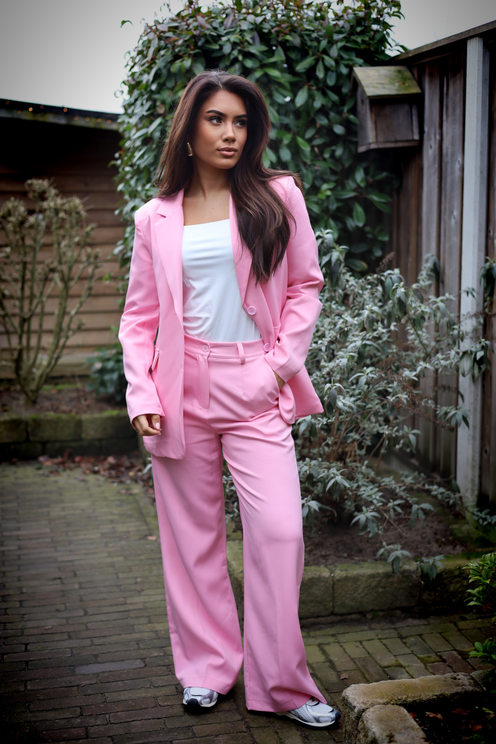 Deze wide leg pantalon met hoge taille is een moderne essential die moeiteloos elegantie en comfort combineert. De gladde, soepelvallende stof geeft de pantalon een chique uitstraling, terwijl de hoge taille zorgt voor een flatterend silhouet. De wide leg pasvorm creëert een lang, gestroomlijnd effect dat zowel vrouwelijk als krachtig oogt. Een tijdloos ontwerp dat in elke garderobe thuishoort. Dankzij de lichte stretch en zachte binnenzijde draagt deze pantalon uitzonderlijk comfortabel, zonder in te leveren op stijl. De hoge taille sluit mooi aan in de taille, terwijl de rechte, wijde pijpen de benen langer doen lijken. Perfect voor dagelijks gebruik, werk of avondgelegenheden, en verkrijgbaar in meerdere lengtematen zodat je altijd de juiste fit vindt. Combineer deze pantalon met de bijpassende blazer voor een complete, stijlvolle set, of draag hem casual met een basic T-shirt en sneakers. Ook mooi te combineren met een satijnen top of knit voor een moderne, geklede look die overdag én ’s avonds past. Dit item komt uit de Getdrezzed-collectie en is perfect te combineren met andere stukken uit dezelfde lijn. Of je het nu solo draagt of als set, je kiest voor een moderne, stijlvolle uitstraling met de vertrouwde pasvorm van Getdrezzed.