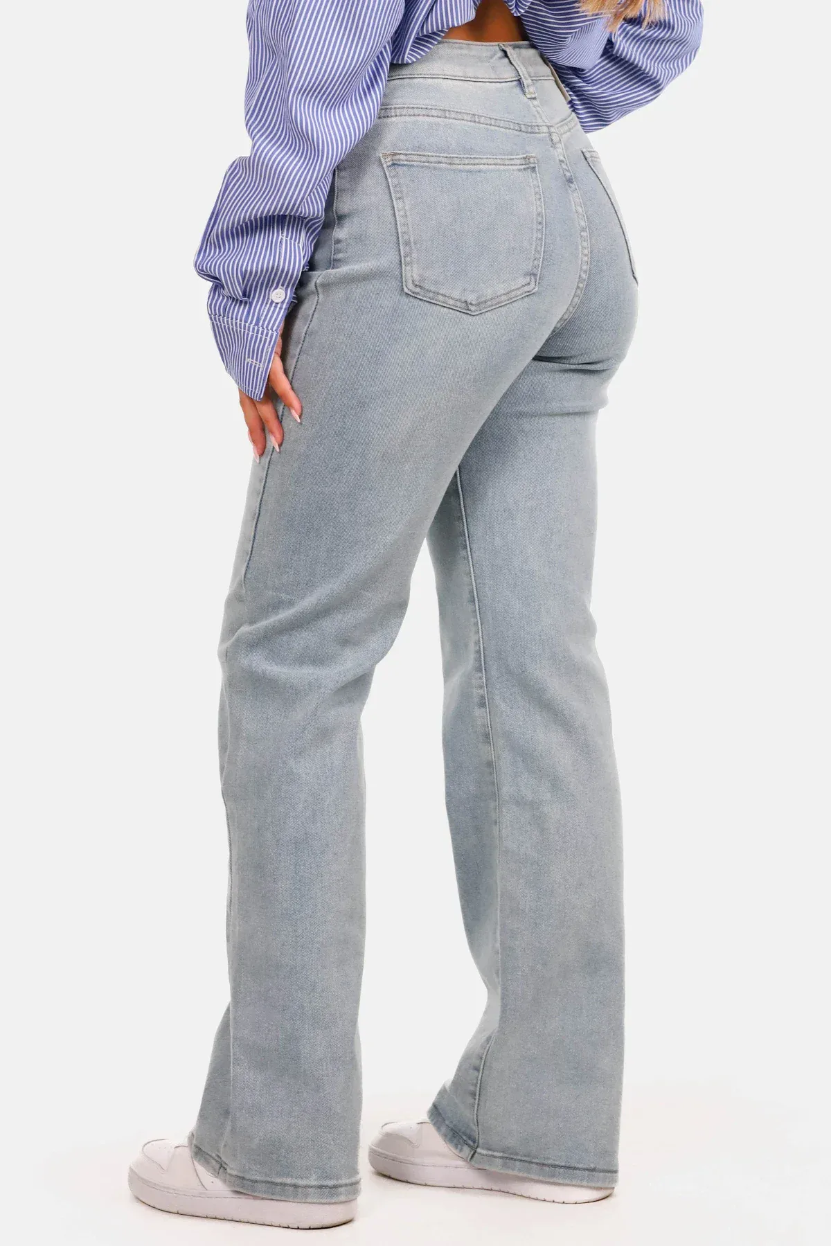 Deze wide leg jeans met hoge taille is ontworpen met oog voor stijl, comfort en een flatterende pasvorm. Het ontwerp is minimalistisch en rechttoe rechtaan, met een klassieke vijfzakkenstijl en een stevige ritssluiting. De rechte pijpen vallen soepel langs het been en zorgen voor een verlengend silhouet dat zowel casual als gekleed te combineren is. Dankzij de soepele en vormvaste denim voelt deze jeans comfortabel aan, zonder in te leveren op stevigheid. De hoge taille sluit mooi aan en biedt een ondersteunend gevoel, ideaal voor dagelijks gebruik. Combineer hem met een top of blouse en je favoriete schoenen voor een veelzijdige outfit die bij elke gelegenheid past. Deze broek maakt deel uit van onze wide range collectie en is beschikbaar in een uitgebreid maatbereik tot en met maat 44. De pasvorm is vertrouwd, afgestemd op diverse lichaamstypes, zodat je zeker bent van een comfortabele en aansluitende fit – elke keer weer.